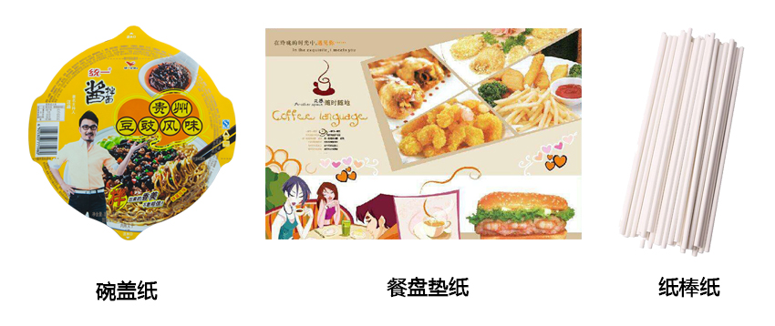 主要用途:多用于制作食品袋、餐盤墊紙、干燥劑袋、酒精干濕包等,覆膜和鋁箔后可作為桶裝大碗面碗蓋使用。
